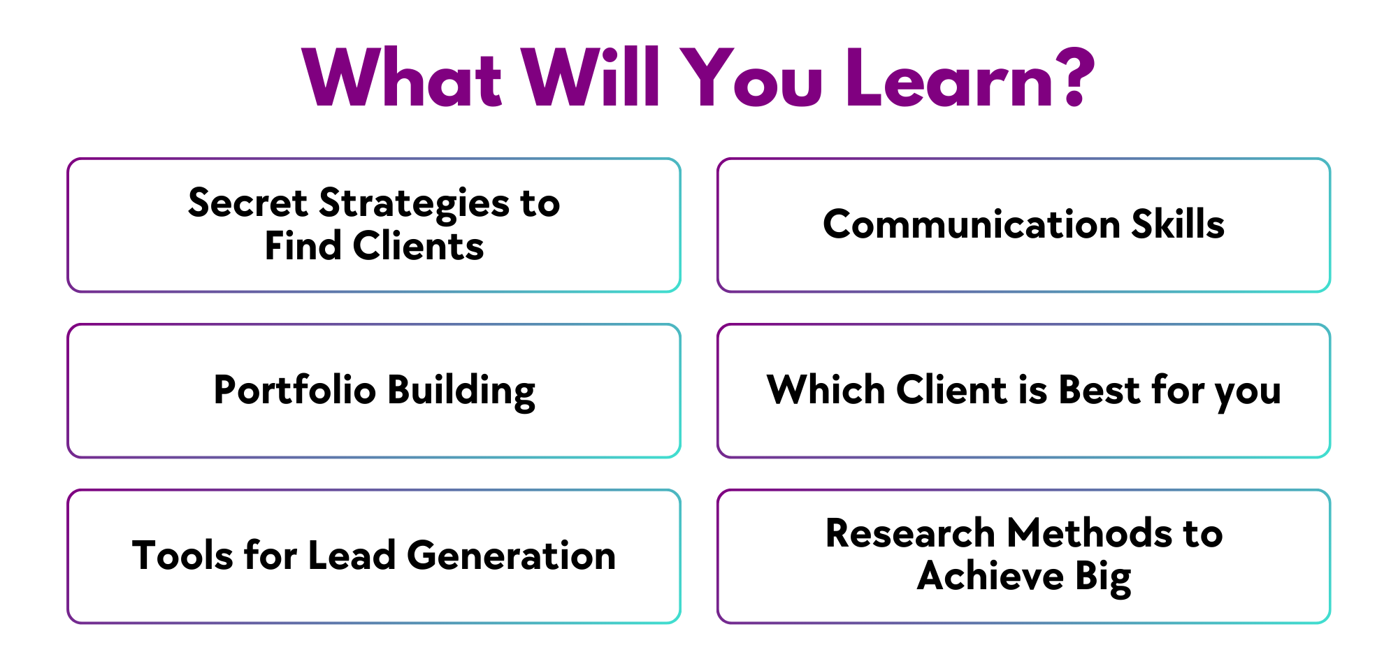Hereโs what youโll learn throughout the Client Hunting Methodology Course:
